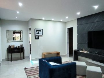 Com uma área total de 528.70m² e 274.00m² de área privativa, esta casa pronta para morar foi projetada para o seu bem-estar. Desfrute de 3 suítes espaçosas, perfeitas para o descanso e privacidade da sua família. As 2 salas proporcionam ambientes distintos para receber e relaxar, enquanto o lavabo adiciona um toque de elegância. Escritório para bem administrar tudo o quanto quiser, duas lavanderias planejadas, aquecimento solar, caixas d'água com 6.00 litros