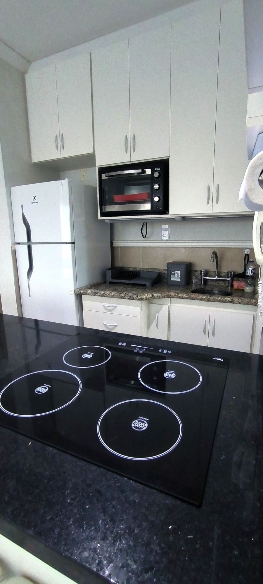 Imóvel com papel de parede lavável, armários planejados na cozinha e banheiro, cooktop de indução, forno